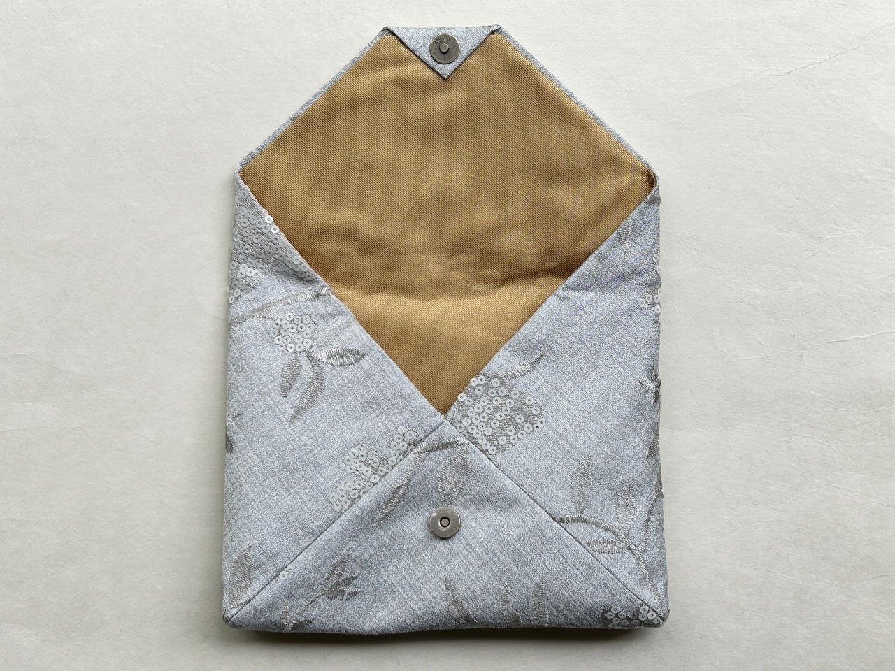 グレーの生地に花柄の刺繍やスパンコールが施されいます。