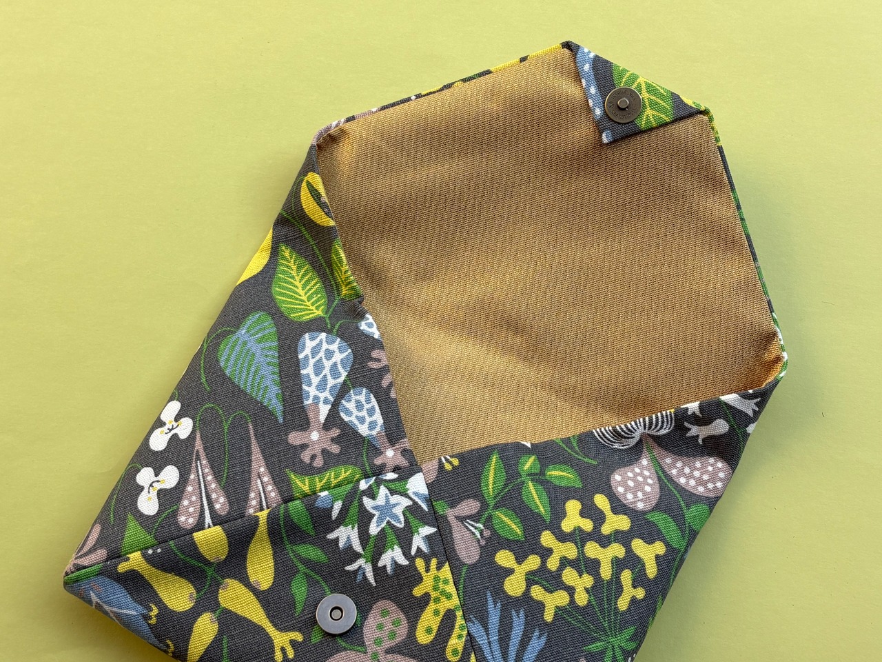 スティグ・リンドベリデザインの様々な陶器の柄が描かれた生地で仕立てました。